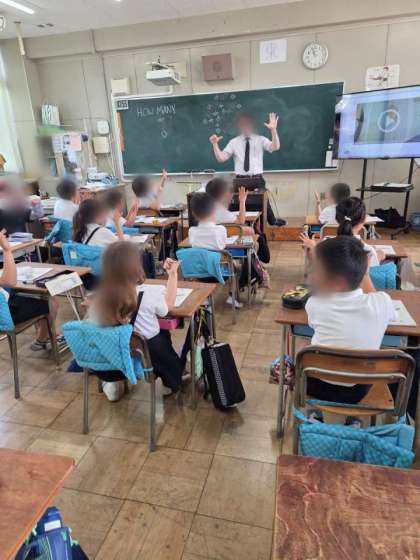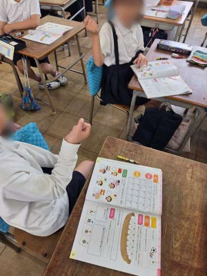 英語でじゃんけんをして、何回勝ったか、何回引き分けだったかを英語で答えました。