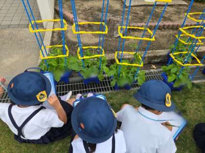 今日はプール開きがあり、1〜4年生がプールに入りました。