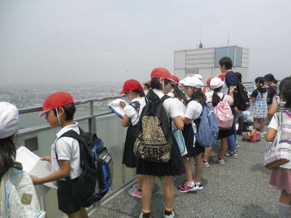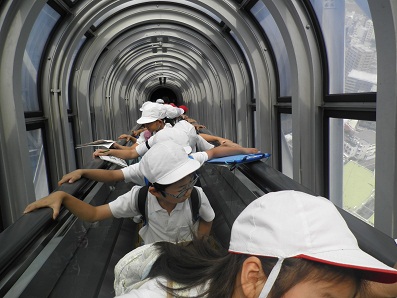 環状線一周と、梅田スカイビルに行ってきました。電車の窓から、各駅の近くにどんな物が見えるかを確認したり、梅田スカイビルから、どの方角に、どんな建物があるかなどを学習しました。