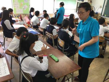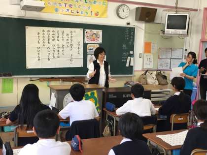 5年生は、「手話を使ってみよう」を学習しました。実際に手話を使われている方の話を聞いたり、『サザエさん』の歌を手話で表したり、指文字を使って自己紹介をしたりしました。