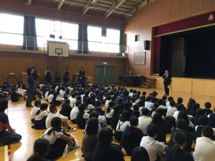 警察の方と連携を取って、不審者が学校内に入って来たことを想定して避難訓練に取り組みました。