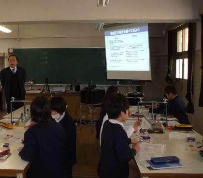 三菱電機株式会社 人材開発センターからきていただいた先生に5年生は電磁石のはたらきについて授業を受けました。