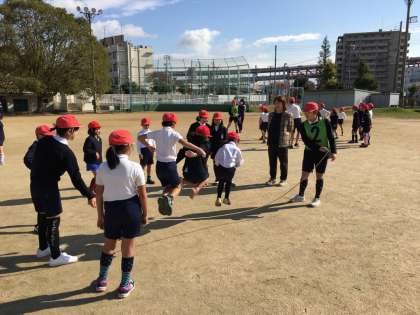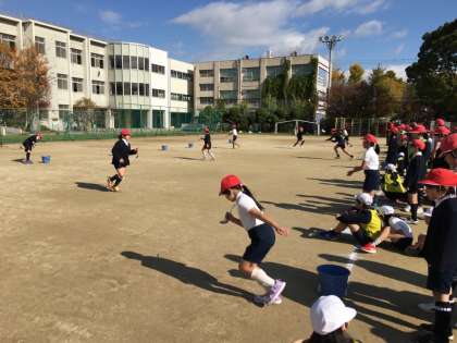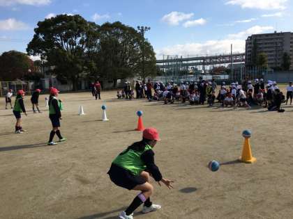 15日に雨で実施できなかったので、本日24日に行いました。たてわり班に分かれて、「スプーンで玉運び」、「ボールあて」、「大なわとび」をして点数を競いました。結果は、次の児童集会で発表します。