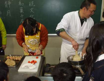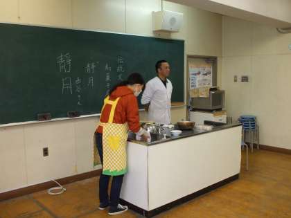 靜月の西谷さんに来ていただき和菓子の作り方を教えていただきました。伝統の技を活かした和菓子作りは興味深いものでした。