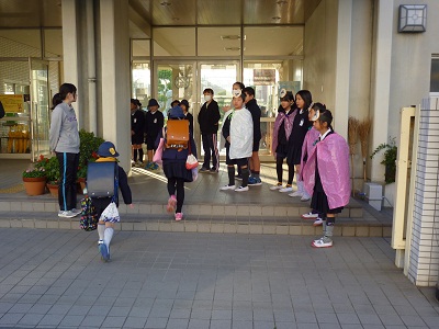 今週は、あいさつ週間です。この日は4年生があいさつマンになって、登校してくる子どもたちに元気よく「おはようございます!」とあいさつしていました。朝から元気よくあいさつすると、1日気持ちよく過ごせますね。