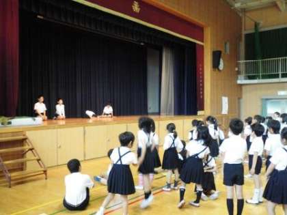 朝の児童集会の様子です。今日は、「人間まちがいさがし」というゲームを行いました。集会委員会の児童が様々なポーズをとり、そのまちがいを見つけるというゲームで、みんな真剣にまちがいをさがしていました。今後の集会も楽しみです。
