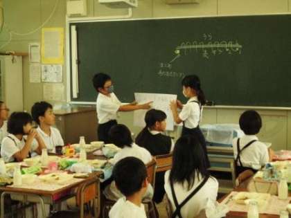 6月23日(金)に行った「交流給食」の様子です。給食を共に行い楽しい会食をする、異学年間の交流を深めることをねらいとしています。学年が上の児童が中心となって給食の用意をし、給食委員会の児童が給食クイズなどを行いました。楽しい一時を過ごすことができました。