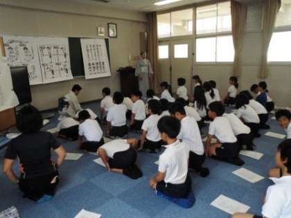 6月27日(火)3・4時限目、5年生が、地域の方から「正式なあいさつの仕方」「浴衣の着方」など、伝統的な立ち振る舞いについて教えていただきました。頭を下げる姿勢や指の付き方など、いろいろな作法を知ることができました。5回にわたって教えていただきます。これから先の学習が楽しみです。