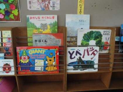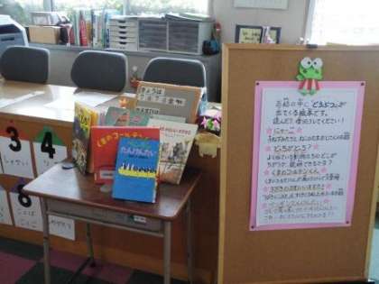 今日は、築港小学校の図書室を紹介します。図書室の整理・整備は、学校図書館補助員、学校図書館担当の先生、図書委員会の子ども達によって進められています。現在は、「どうぶつ」にかかる本の紹介や子ども達による本の紹介・動物の足型など、工夫された展示がされています。また、大型絵本をはじめとする、たくさんの本があり、読書や調べ学習などで利用されています。
