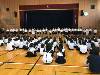 7月20日(木)1学期の終業式が行われました。3年生と6年生の児童代表による1学期の思い出や、校長先生や生活指導の先生から夏休みの過ごし方についてのお話を聞きました。暑い中、静かに聞くことができました。