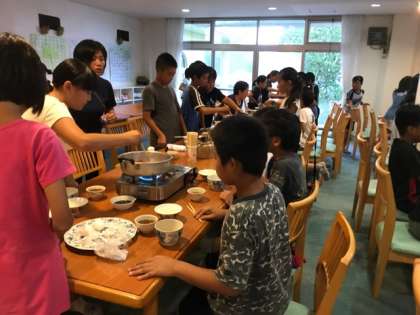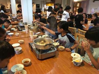 食事係が早めに集合して、班のみんなの分の準備をしてくれます。