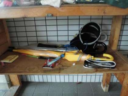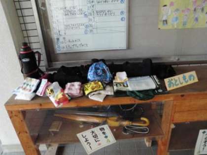 1学期からたまっている「落し物」を玄関で広げて置いています。ハンカチ、ベスト、給食袋、水稲、かさ等、たくさんの落し物があります。記名されていれば、もどってきます。一度、お子様の持ち物をお確かめください。
