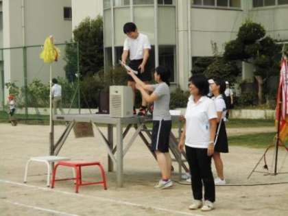 休憩時間などを使って、児童会や応援団の児童が開・閉会式の練習に取り組んでいます。短い時間の中で、しっかりと練習に取り組む児童を見ていると、とてもがんばっているなと思います。