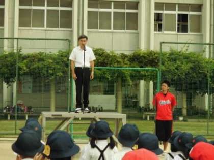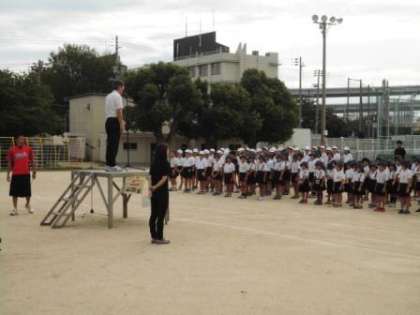 9月11日(月)、朝の児童朝会の様子です。校長先生をはじめとする先生方から学校生活に関わるお話を聞きました。2学期も1学期と同様に、「幸せ宝箱」活動を行っています。友達の良いところをたくさん見つけ、職員室前や各学年の木に貼っていきます。葉や実でいっぱいになった木を見るのが楽しみです。