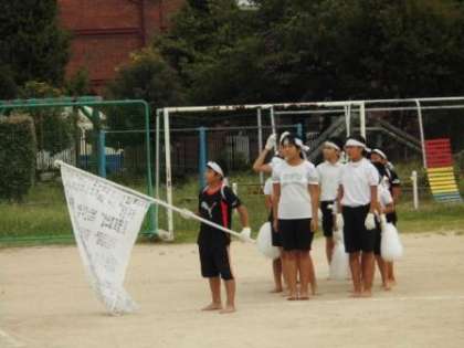 運動会、応援団の練習の様子です。先週ぐらいから、昼休み・放課後などで練習を重ねてきています。練習も中盤にさしかかり、しっかりと声も出るようになってきました。本番でも、力強く応援すると思います。あたたかい声援をお願いします。