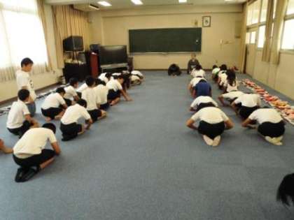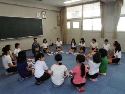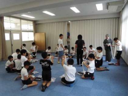 9月12日(火)3・4時限目、5年生が「伝統文化教室」を受講しました。講師の方から、浴衣の着付け、お菓子・お抹茶のよばれ方について教えていただきました。子ども達も興味深げに、所作を学んでいました。今週木曜日にも、教えていただきます。