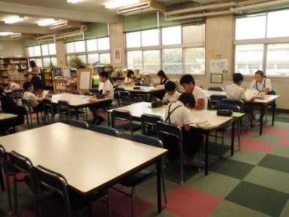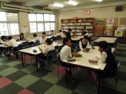 9月22日(金)1時限目、5年2組の図書館活動と図書館の様子を紹介します。毎週金曜日は、「学校図書館補助員」の方が来られる日です。子ども達の読書にかかる相談や読み聞かせなどをしてくださいます。今日も読書のあと、読み聞かせをしていただきました。また、図書館内では、図書委員会のこども達が工夫して、いろいろなコーナーを作っています。今は、「心あたたまる本」のコーナーが開設されています。