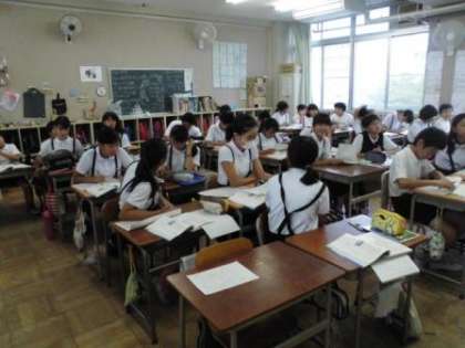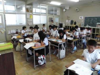 6年生の学習の様子です。運動会の練習が続いていますが、その中でも、各教科学習にもしっかりと取り組んでいます。今日は、環境に関わる資料を、文にまとめるという学習でした。互いに相談しながら、学習を進めていました。