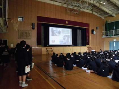 図書室の利用の仕方や人気の本の紹介があり、最後に「いちにちむかしばなし」の読み聞かせもありました。