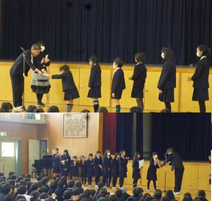 読書感想文の表彰とキックベースボールの表彰がありました。