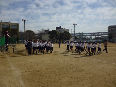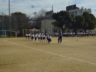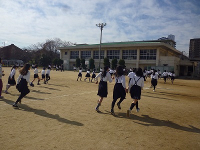 寒い日が続きますが、本日よりかけ足タイムが始まりました。毎日20分休みに運動場に出て、クラスごとに並んだ後、それぞれ自分のペースで走ります。元気に走った後は体がぽかぽかして、気分も爽快になります。