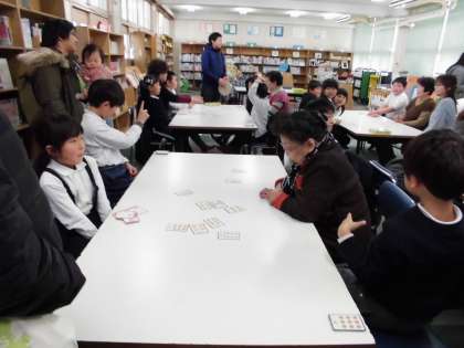 2年生は、特別講師として地域の方に来ていただき、「九九かるた」と「犬棒かるた」をしました。保護者も一緒にして盛り上がりました。
