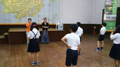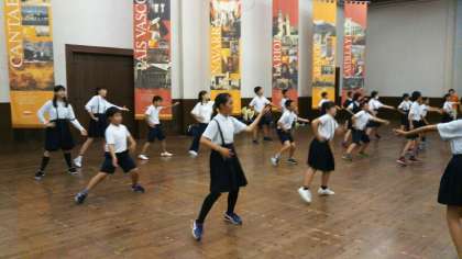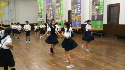 スペイン村で、フラメンコレッスンを受けました。上手におどれたので、先生からほめてもらいました。