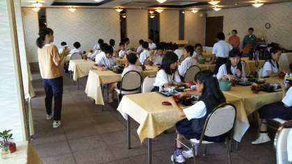 朝食の様子です。しっかり食べて、活動します。ガンバるぞ。
