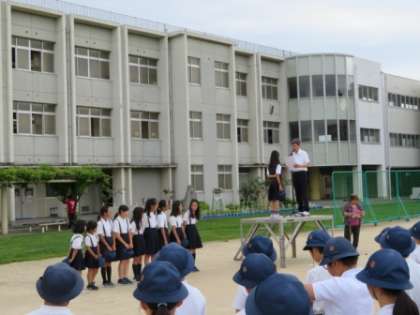 6月11日(月)、児童朝会の様子です。昨日、港区内でキックベースボールの大会があり、本校のチームが3位になり、表彰状が校長先生より手渡されました。キックベースボールチームはよい成績を残し、たびたび表彰されています。