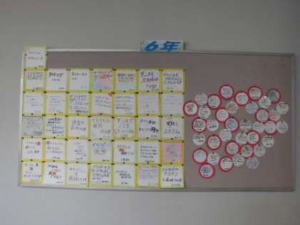 前回は低学年の掲示物を紹介したので、今回は高学年の掲示物を紹介します。4年生は各班で記事の内容を工夫した壁新聞、5年生は教科書の詩の中から書きたい詩を選び視写した作品、6年生は小学校生活最後の運動会に寄せる熱い思いを書いたメッセージカードが掲示されています。内容は変わっていきます。ご来校の際には、ぜひ、各学年の掲示物をご覧ください。