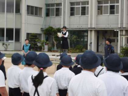 月曜日の休みが続いたため、5週間ぶりの児童朝会となりました。ソフトボールの試合や絵画のコンクールで優秀な成績をおさめた児童の表彰に次いで、校長先生、看護当番の先生、生活指導の先生方から、服装やあいさつなど、学校生活に関わる話がありました。最後は、児童会の児童から「赤い羽根募金」の呼びかけがあり、内容の多い児童朝会となりました。