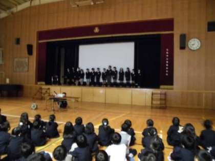 朝の児童集会の様子です。今日は、広報放送委員会の発表がありました。さすが、広報放送委員会、ビデオを使った工夫された発表で、広報放送委員会の日々の仕事がよくわかりました。
