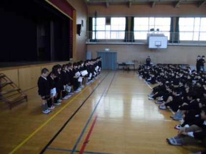 12月25日(火)、第2学期終業式を行いました。校長先生、生活指導担当の先生からは、2学期を振り返っての話や冬休みの生活で気を付けることについてお話がありました。本校の終業式では、各学年からの発表を行っています。今回は2・5年生の発表で、2年生は「かさじぞう」の朗読、5年生は思い出に残った行事の発表の後、合奏をしました。両学年とも、聞きごたえ、見ごたえのある発表でした。
