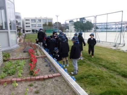 本日の1時限目、2年生が生活科学習で、土づくりをして球根を植える準備をしました。自分たちで育て取ることができた、チューリップの球根を植える予定です。