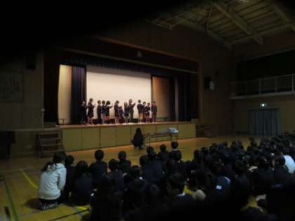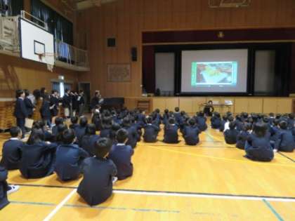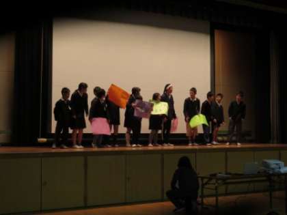 朝の児童集会の様子です。今日は、給食委員会の発表でした。
