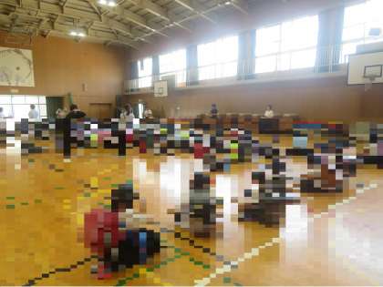 今日は大阪に大型台風が直撃することを想定した避難訓練がありました。子どもたちは訓練の放送を聞き、先生の話を聞いて素早く体育館に集まり、下校することができました。