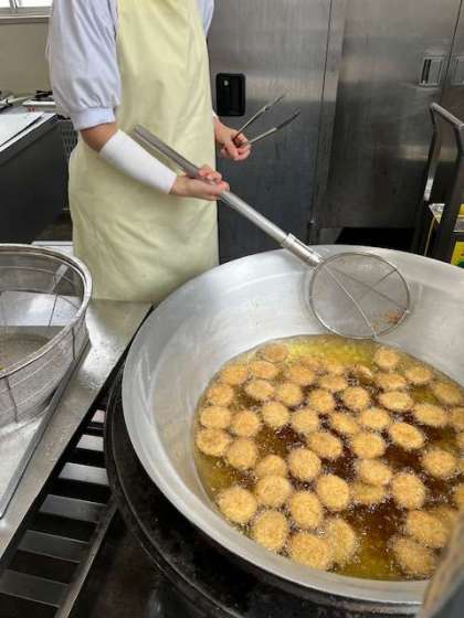 チキンレバーカツは、ほんのりカレー風味で食べやすく、不足しがちな鉄分を補える一品です。子どもたちにも大人気の献立でした。