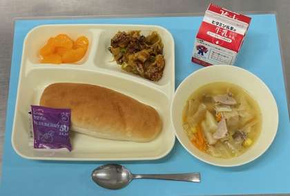 カレーマカロニグラタンは、鶏肉、マカロニ(米粉)、たまねぎ、マッシュルーム、彩りにグリンピースを使用したカレー味のグラタンです。クリームや小麦粉、牛乳を使用せず、カレールウの素(米粉)や上新粉などを使用し、乳や小麦アレルギーのある児童も食べることができます。