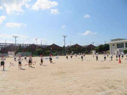 1,2年生が運動会に向けて玉入れの練習をしました。かごをめがけて一生懸命に投げていました。玉が入るたびに嬉しそうな声がたくさん聞こえてきました。和やかな雰囲気でした。