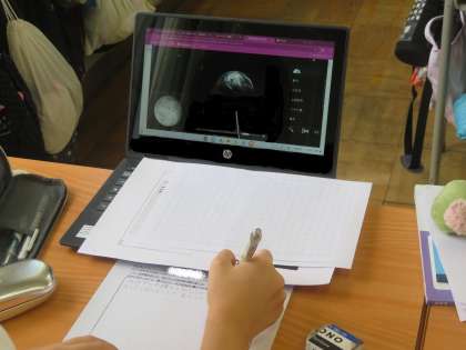 前半は講義を集中して聞きました。後半は地球の動きと月の動き、太陽の光が当たる向きが宇宙からの視点で見え、自由に操作して月の形の変化を見ることができるアプリケーションを使って、考えることができました。
