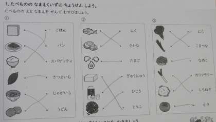 1年生は「たべものはかせになろう」という学習でした。いろいろな食べ物の名前を知る中で「これ知ってる!」「食べたことがある!」と楽しみながら学習していました。