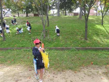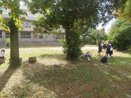 1年生は校外学習で港住吉神社や天保山公園に秋みつけに行きました。どんぐりや松ぼっくり、色が変わった落ち葉など、いろいろな秋を見つけました。自然と触れ合う中で、季節の変化を感じることができました。