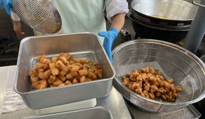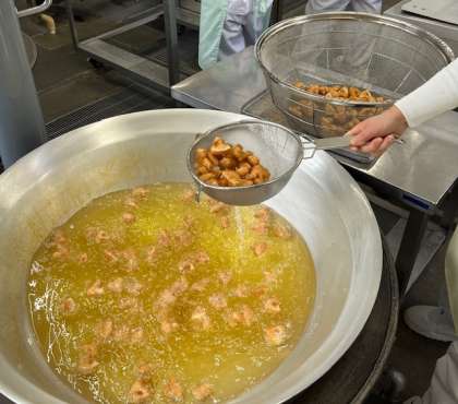 れんこんは、「蓮(はす)」という植物の地中にある茎の部分です。かぜを防ぐビタミンCや、おなかの調子を整える食物繊維などが多く含まれています。
