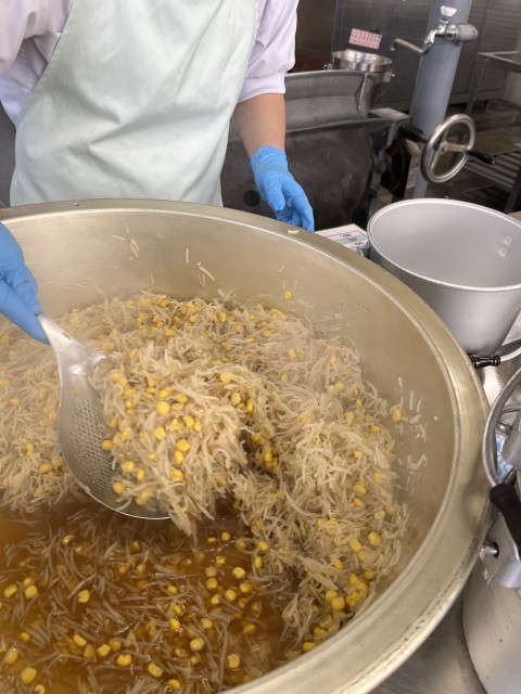 給食では、ブラックマッペから作られるもやしを使っています。