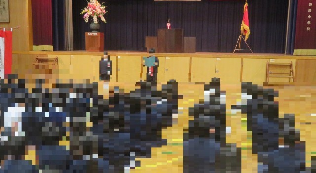 その後、5年生の代表児童が校長先生から修了証を受け取りました。校長先生のお話や生活指導担当からの話を聞き、修了式を終えました。