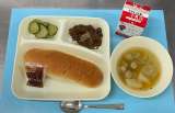 《今日の献立》 ウインナーのケチャップソース スープ、焼きかぼちゃ 黒糖パン、牛...