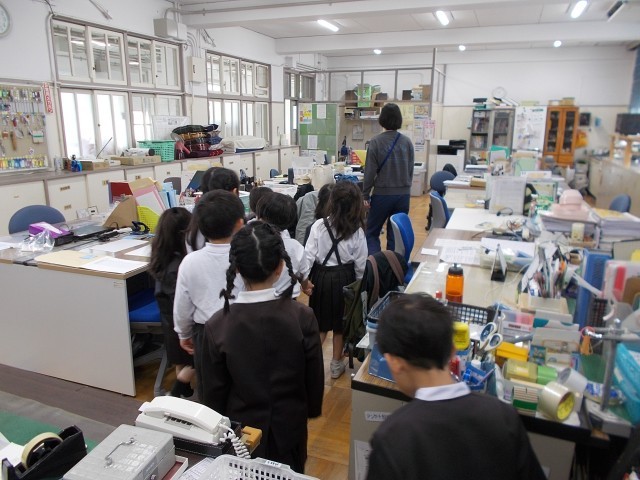 6年生たちは、お世話になったさまざまな教職員に、メッセージカードを渡しに行っていました。