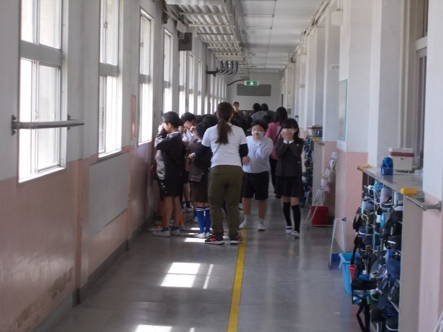 講堂にイスが設置されているため、体育は運動場でしかできません。