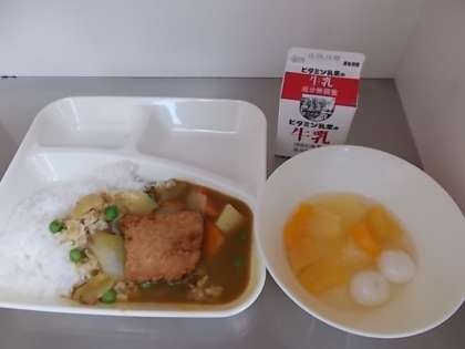 カツカレーでした。いつの時代も子どもたちに人気のカレー、おいしいです!