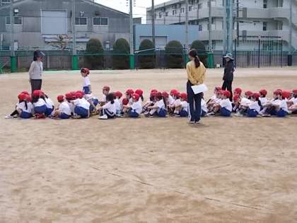 そのほかの子たちは、三角すわりをしています。えらいですね。